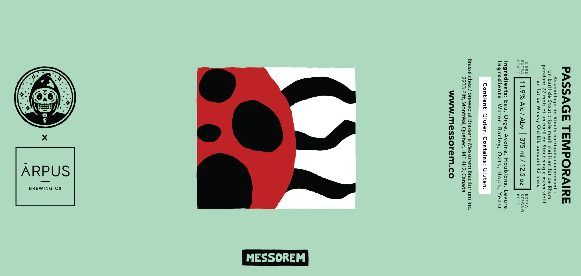 PASSAGE TEMPORAIRE – Assemblage Stout BA fûts de rhum 22 mois et Whisky Old Elk 42 mois – 11.9% alc/abv, 375ml/25oz. Messorem x Arpus Brewing