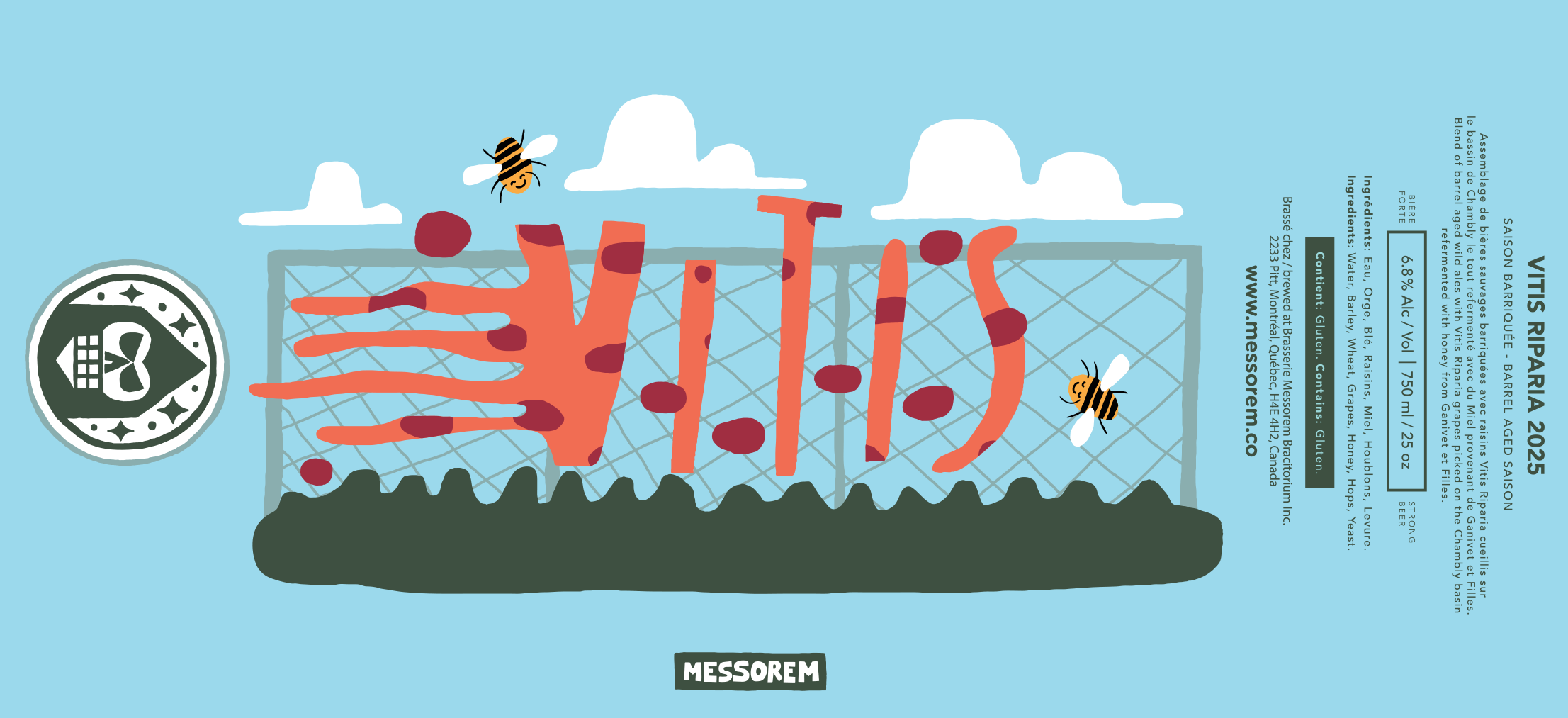 VITIS RIPARIA (2025) – Assemblage de bières sauvages barriquées avec raisins Vitis Riparia – 6.8% alc/abv, 750ml/25.35oz.